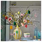 Декоративные бумажные яйца в весенних тонах украсят любой букет из цветов или веточек — хоть натуральный, хоть искусственный.