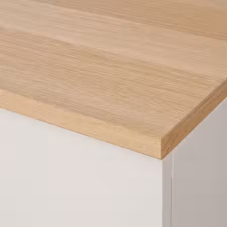 Сочетайте дверцу из дубового шпона с каркасом PAX белого или бежевого цвета, а дверцу из дубового шпона с коричневой морилкой — с тёмно-серым каркасом.