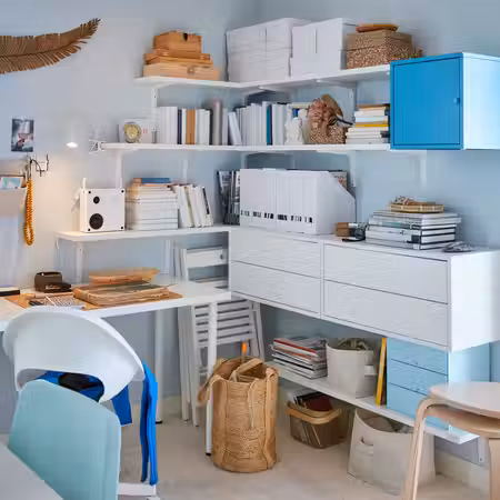 Создайте индивидуальное решение для хранения, комбинируя разные каркасы, контейнеры и полки.