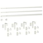 Эта комбинация состоит из 4 упаковок настенных/потолочных креплений, 8 упаковок держателей гардинного карниза, 3 гардинных карнизов и 1 упаковки наконечников (2 наконечника в упаковке).