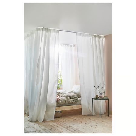Эта комбинация состоит из 4 упаковок настенных/потолочных креплений, 8 упаковок держателей гардинного карниза, 3 гардинных карнизов и 1 упаковки наконечников (2 наконечника в упаковке).