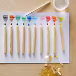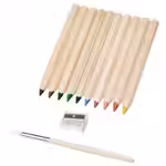 В набор входит: 10 карандашей разных цветов, 1 точилка и 1 кисть.