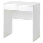 «Жизнь в ограниченном пространстве требует нестандартного подхода к хранению вещей. Именно для этих целей мы создали серию БРИМНЭС — практичную мебель для спальни с интегрированным решением для хранения в каждом предмете. И конечно, все предметы серии продаются по доступным ценам! Один из таких товаров — туалетный столик. В нем есть вместительный ящик и удобное отделение под столешницей на петлях, с обратной стороны которой размещено зеркало. Вы можете также использовать столик как письменный стол или прикроватную тумбу — и он будет прекрасно смотреться рядом с другой мебелью этой серии».