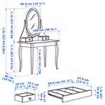 Два маленьких ящика около зеркала и один большой под столешницей обеспечат достаточно места для хранения украшений и косметики.