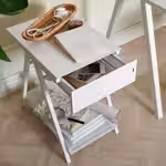 Тумбу можно поставить у кровати или задвинуть под стол.