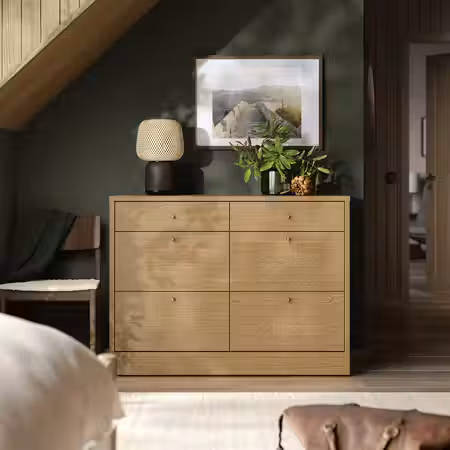 Благодаря цоколям из массива сосны с продуманными деталями и текстурированной поверхностью штабелируемые модули HAVSTA легко превращаются в отдельно стоящие.