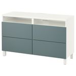 Тумба для ТВ с ящиками, белый, Вальвикен серо-бирюзовый (120x40x74 см)