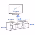 Мы рекомендуем, чтобы тумба была немного шире, чем установленный на ней телевизор. Эта тумба подходит для телевизора до 57 дюймов. Вы можете выбрать телевизор большего размера, если он не тяжелее указанной максимальной нагрузки на верхнюю панель тумбы.