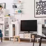 Дополните другими предметами серии БАГГЕБО и создайте решение для хранения со стеллажами, открытыми и закрытыми шкафами и тумбой под ТВ.