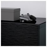 Благодаря интегрированному нажимному механизму ящик и дверцы открываются легким нажатием. Панель из закаленного стекла защищает верхнюю панель тумбы под ТВ и делает ее стильной. Пульт дистанционного управления работает через стекло.