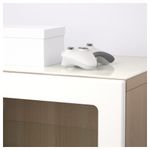 Благодаря доводчикам ящик и дверцы закрываются плавно и бесшумно. Панель из закаленного стекла защищает верхнюю панель тумбы под ТВ и делает ее стильной. Пульт дистанционного управления работает через стекло.