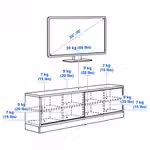Мы рекомендуем выбирать тумбу под ТВ шириной немного больше телевизора. Эта тумба подходит для ТВ до 70 дюймов. На нее можно также поставить телевизор большего размера, если его вес не превышает указанную максимальную нагрузку на верхнюю панель тумбы.