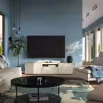 Мы рекомендуем, чтобы тумба была немного шире, чем установленный на ней телевизор. Эта тумба подходит для телевизора до 72 дюймов. Вы можете выбрать телевизор большего размера, если он не тяжелее указанной максимальной нагрузки на верхнюю панель тумбы.