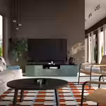 Благодаря нескольким отверстиям на задней панели тумбы под ТВ провода от телевизора и других устройств всегда будут под рукой, но не на виду.