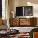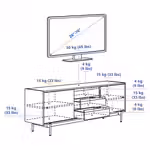 Мы рекомендуем выбирать тумбу под ТВ шириной немного больше телевизора. Эта тумба подходит для ТВ до 70 дюймов. На нее можно также поставить телевизор большего размера, если его вес не превышает указанную максимальную нагрузку на верхнюю панель тумбы.