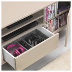 В большом ящике удобно хранить пульты дистанционного управления, игровые приставки и другие ТВ-аксессуары. Отверстия для проводов на задней панели. Провода не на виду, но всегда под рукой.