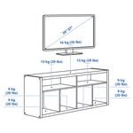 Мы рекомендуем, чтобы тумба была немного шире, чем установленный на ней телевизор. Эта тумба подходит для телевизора до 57 дюймов. Вы можете выбрать телевизор большего размера, если он не тяжелее указанной максимальной нагрузки на верхнюю панель тумбы.