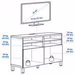 Верхняя панель тумбы под ТВ предназначена для телевизора весом не более 16 кг.