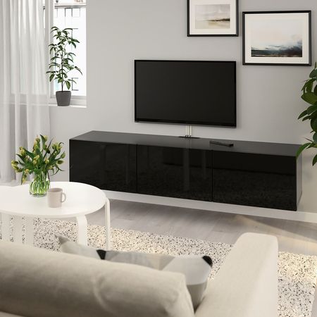 Чтобы подчеркнуть современный и лаконичный стиль интерьера, тумбу под ТВ БЕСТО можно закрепить на стене.