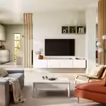 Стоящая на полу тумба под ТВ должна быть закреплена к стене с помощью прилагающихся креплений. Эти же крепления следует использовать при установке тумбы на стене, но накладная шина БЕСТО не должна использоваться.