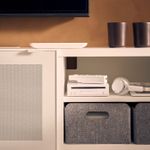 Сетчатые металлические дверцы пропускают сигнал от пульта, поэтому за ними можно разместить электронное оборудование.Чтобы подчеркнуть современный и лаконичный стиль интерьера, тумбу под ТВ БЕСТО можно закрепить на стене.