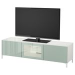 Тумба под ТВ, с дверцами БЕСТО, белый Сельсвикен, глянцевый/серо-зеленый светлый прозрачное стекло