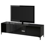 Тумба под ТВ, с дверцами БЕСТО, черно-коричневый, Сельсвикен глянцевый/черный прозрачное стекло (180x40x38 см)