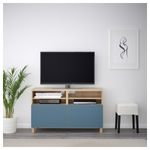 Тумба под ТВ, с дверцами БЕСТО, под беленый дуб, Вальвикен темно-синий (120x40x74 см)