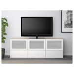 Тумба под ТВ, с дверцами и ящиками БЕСТО, под беленый дуб, Сельсвикен глянцевый/белый матовое стекло (180x40x64 см)
