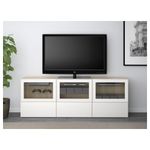 Тумба под ТВ, с дверцами и ящиками БЕСТО, под беленый дуб, Сельсвикен глянцевый/белый прозрачное стекло (180x40x64 см)