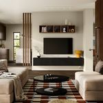 Много места для хранения и отверстия для проводов: эта навесная тумба под ТВ объединяет три каркаса в стильное и функциональное решение.