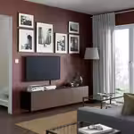 Чтобы подчеркнуть современный и лаконичный стиль интерьера, тумбу под ТВ БЕСТО можно закрепить на стене.