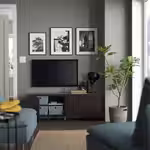 Мы рекомендуем, чтобы тумба была немного шире, чем установленный на ней телевизор. Эта тумба подходит для телевизора до 45 дюймов. Вы можете выбрать телевизор большего размера, если он не тяжелее указанной максимальной нагрузки на верхнюю панель тумбы.