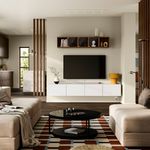 Много места для хранения и отверстия для проводов: эта навесная тумба под ТВ объединяет три каркаса в стильное и функциональное решение.