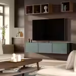 Чтобы подчеркнуть современный и лаконичный стиль интерьера, тумбу под ТВ БЕСТО можно закрепить на стене.