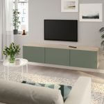 Особенности «BESTÅ БЕСТО Тумба под ТВ, с дверцами - под беленый дуб/Нотвикен серо-зеленый 180x42x38 см» отмеченные производителем IKЕА: