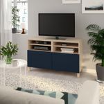 Тумба под ТВ, с дверцами, под беленый дуб/нотвикен/стуббарп синий 120x42x74 см IKEA BESTÅ БЕСТО