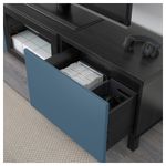 Тумба под ТВ с ящиками и дверцей, черно-коричневый Вальвикен, темно-синий прозрачное стекло (180x40x48 см)