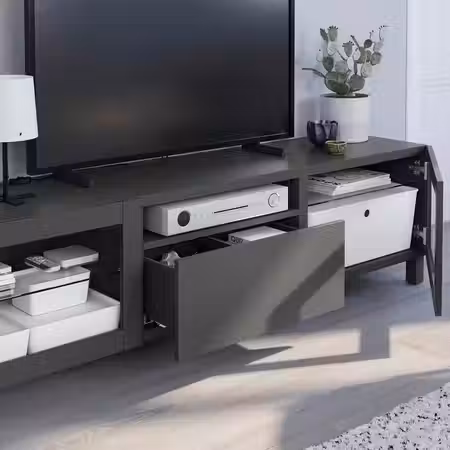 Два ящика обеспечат порядок в хранении пультов, игровых приставок и других аксессуаров для ТВ.