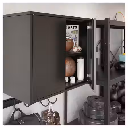 Тёмно-серая фронтальная панель с простым лаконичным дизайном придаст вашему решению для хранения современный вид.