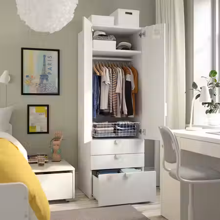 Эта раздвижная дверь идеально сочетается с каркасами PAX с такой же отделкой.