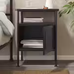 Эта прикроватная тумба предлагает решения для открытого и закрытого хранения.