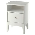 Эта прикроватная тумба обеспечивает возможность открытого и закрытого хранения, в ее задней панели есть отверстие для проводов, и она сочетается с кроватями ИДАНЭС.