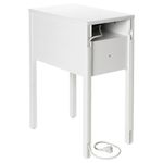 На скрытой полочке можно поставить удлинитель для подключения к сети различных устройств. Провод, идущий к розетке, можно спрятать в паз, расположенный вдоль ножки тумбы. Съемная вставка в ящике – идеальное решение для хранения различных мелочей.