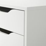 Прорезные ручки придают тумбе выразительность и делают открывание ящиков удобным.