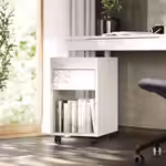 Эта стильная и лаконичная тумба с ящиками стоит на практичных колесах, что позволяет легко перевозить ее при необходимости.
