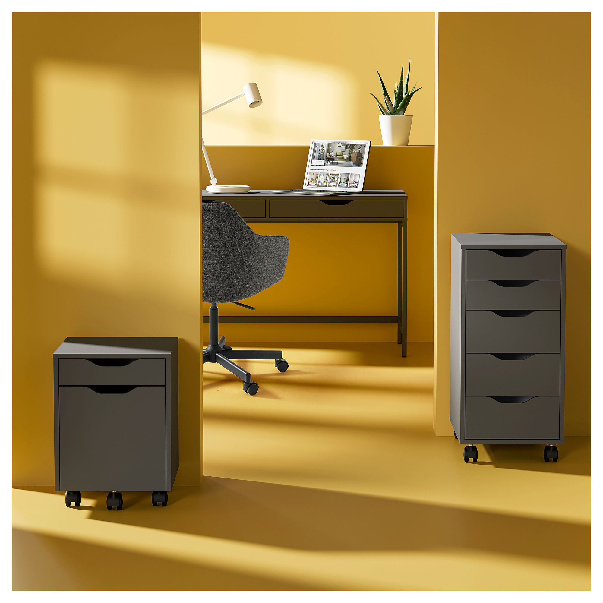 Особенности «ALEX АЛЕКС тумба с ящиками на колесах, темно-серый-черный, 36x76 см» заявленные производителем IKЕА: