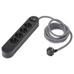 Удлинитель 4-местный, 2 USB-порта, черный-белый, текстиль, 3.0 м IKEA KOPPLA КОПЛА включает в себя следующие материалы: