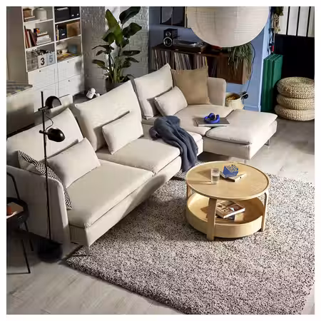 Мягкая мебель серии СОДЕРХЭМН с комфортным низким и глубоким сиденьем и незакрепленными подушками спинки для оптимальной поддержки.