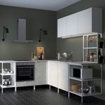 Серия ЭНХЕТ позволяет создавать комбинации мебели, чтобы начать в кухне новую жизнь. В этом угловом решении есть место для встраиваемой техники. В кухне Г-образной планировки легче передвигаться, а все вещи хранятся под рукой.